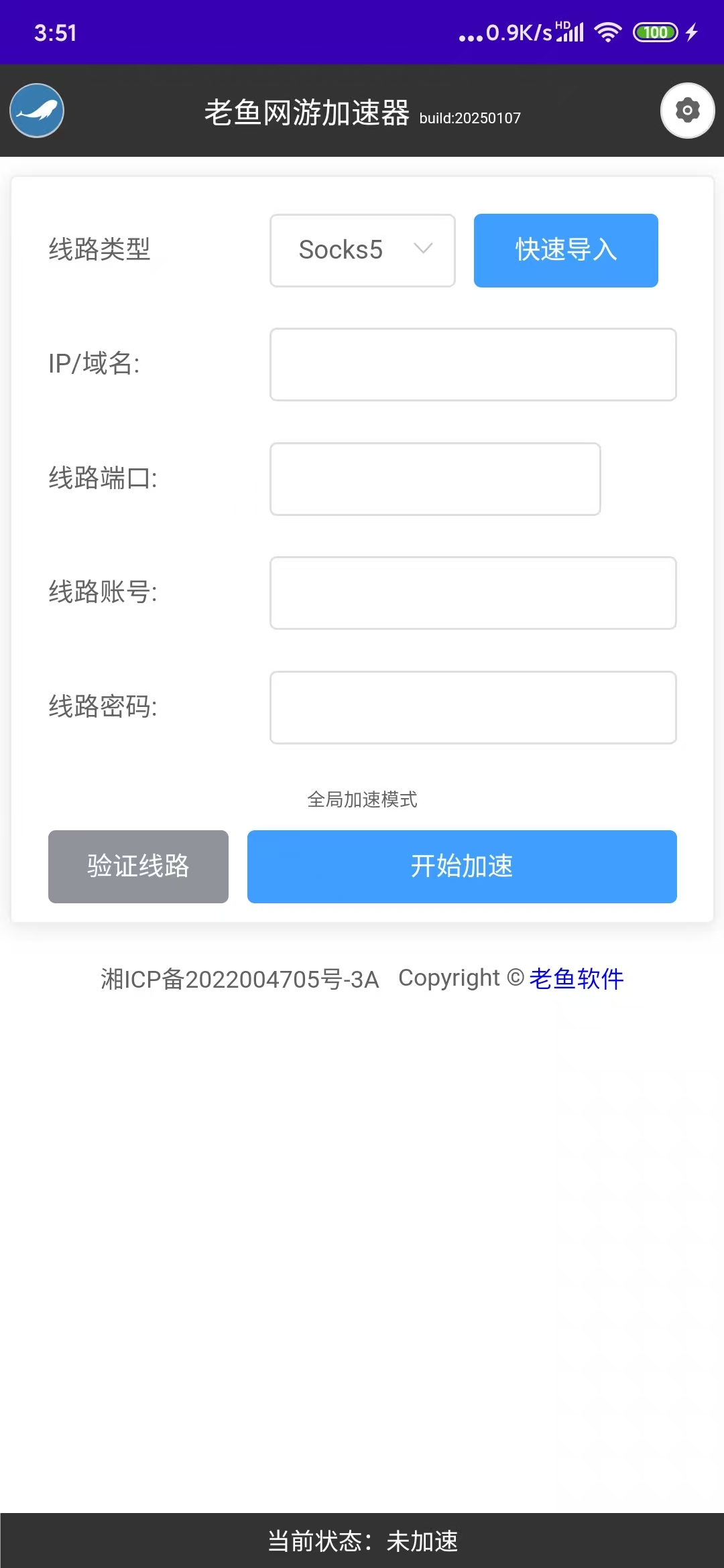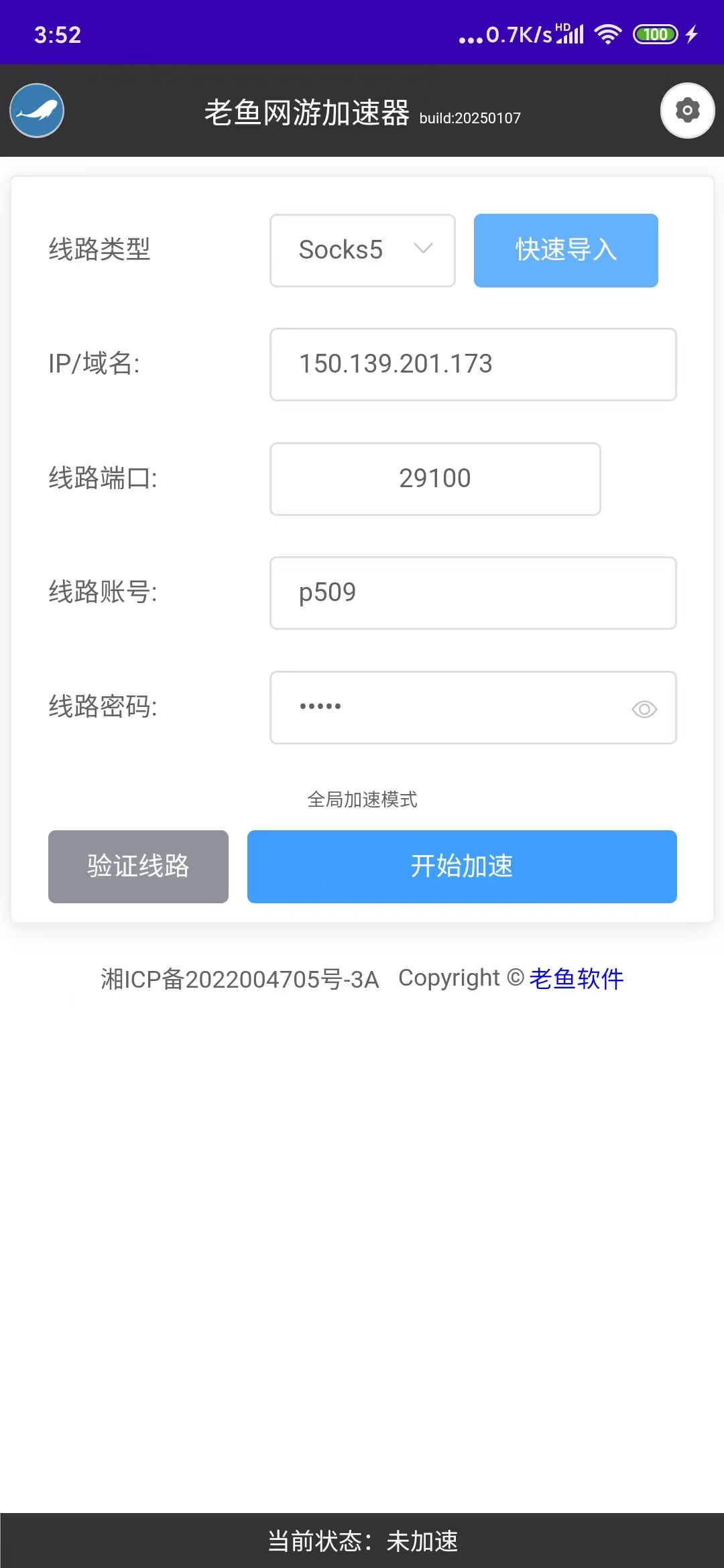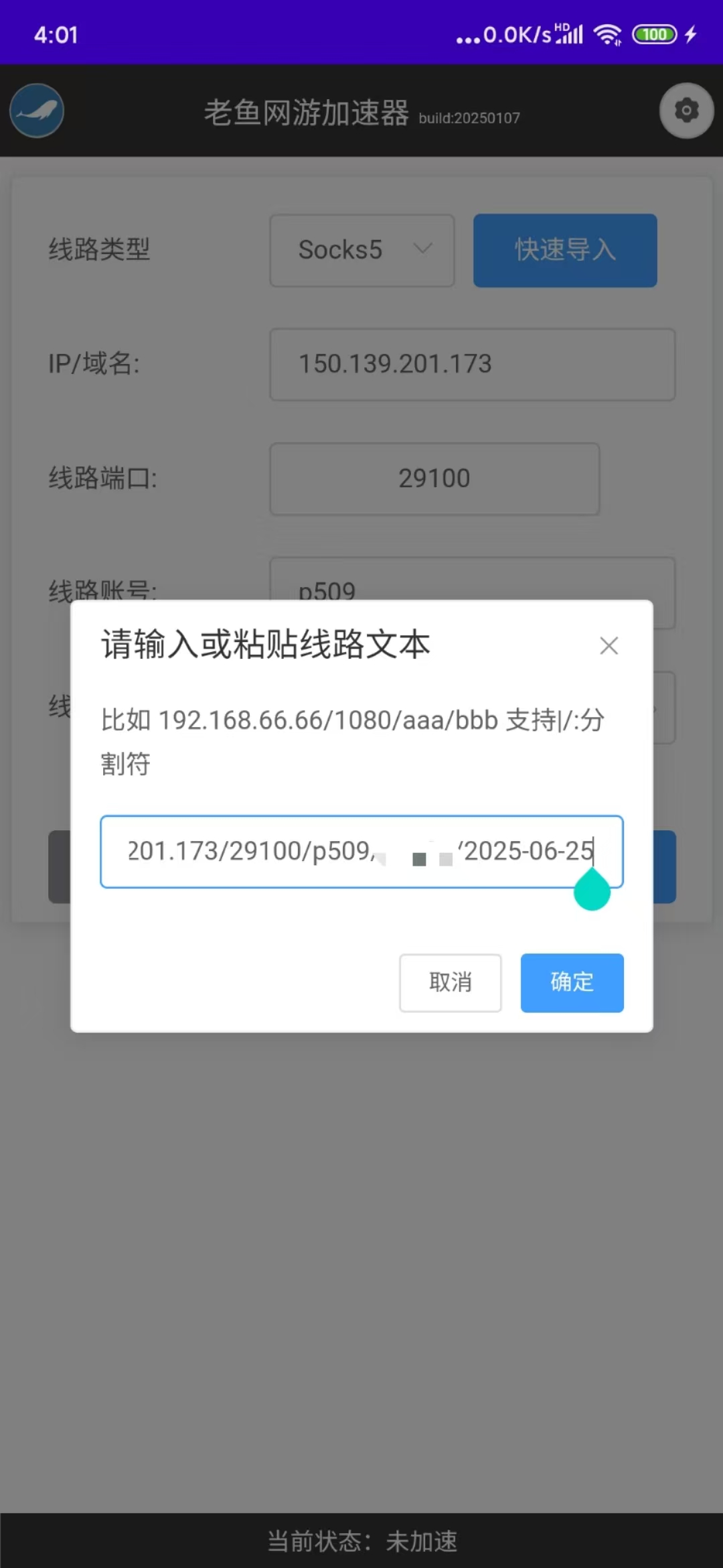 6、也可以手动输入您的代理ip,导入或者输入完成后点击开始加速