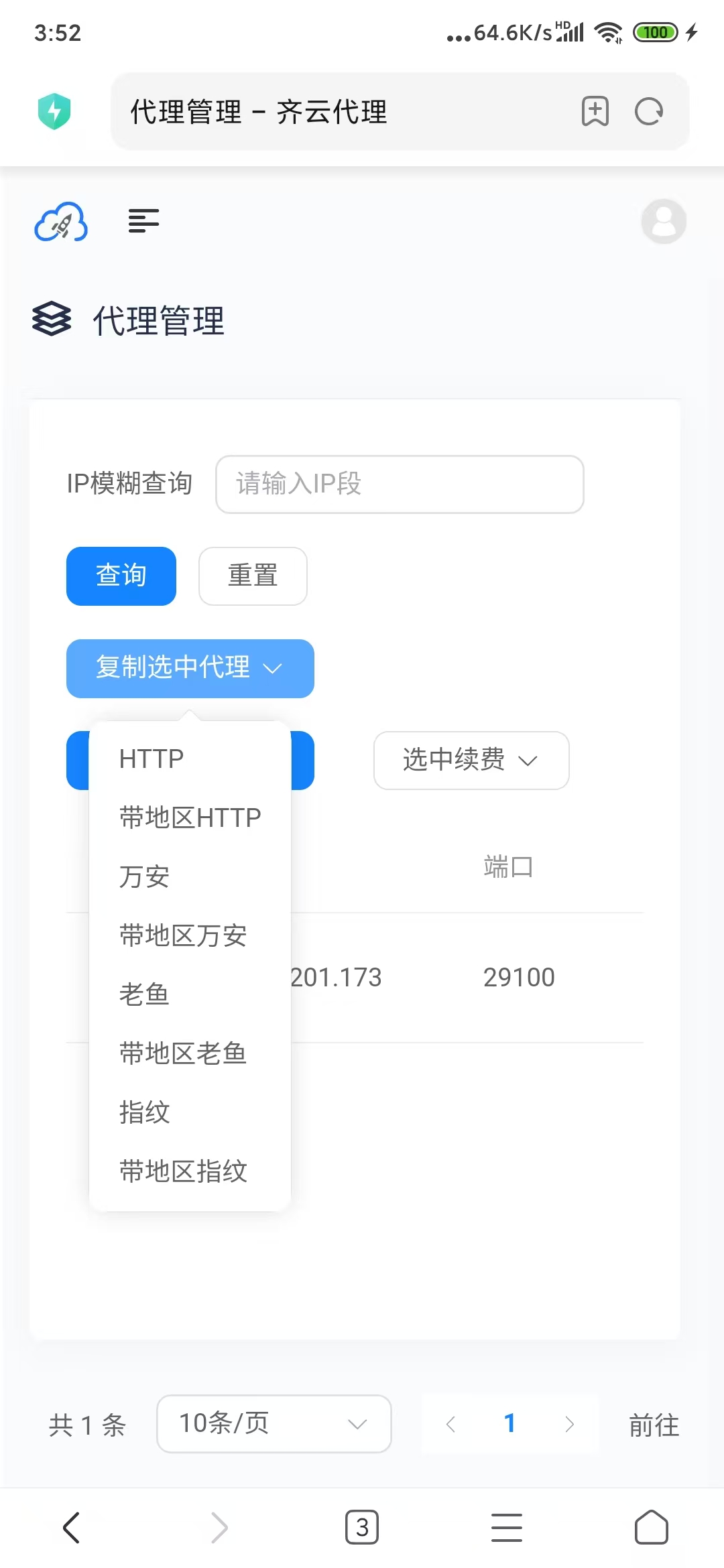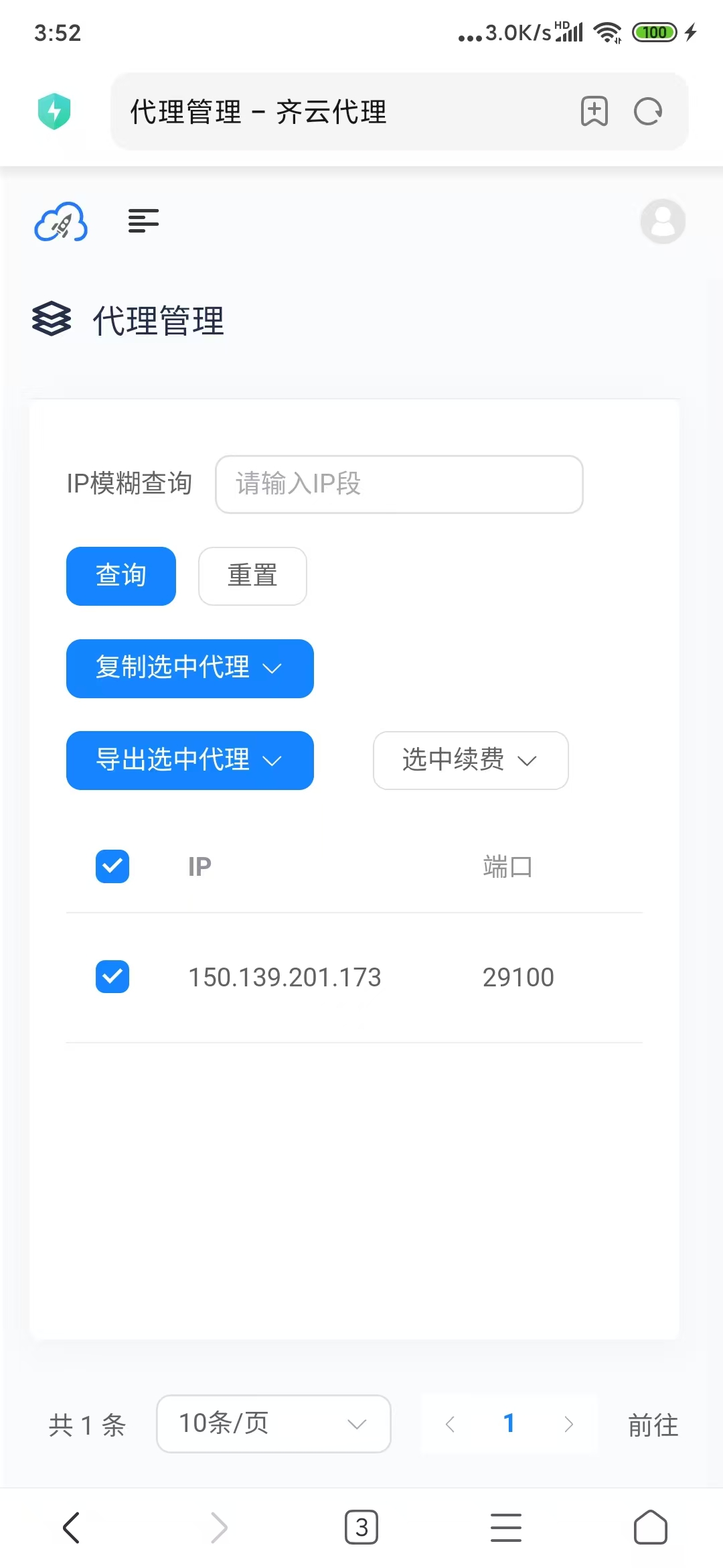 3、在平台选中您需要使用的IP(建议使用长效代理ip)