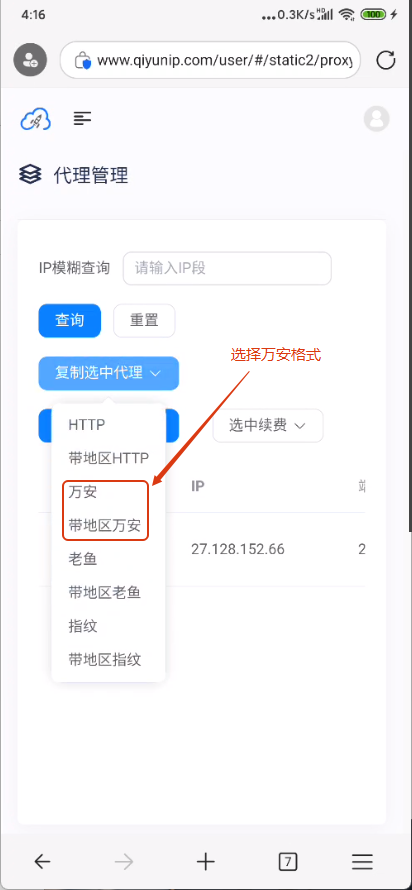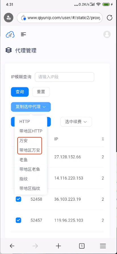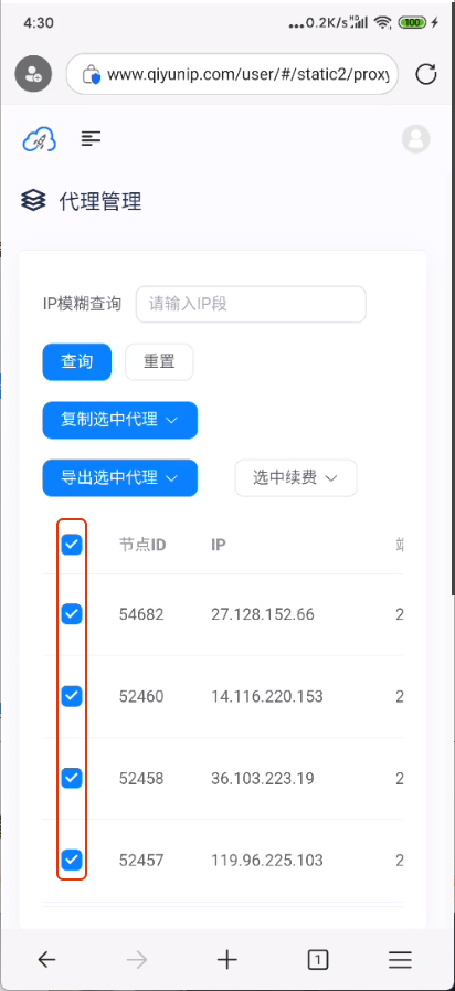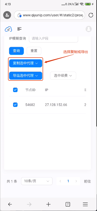(2)在平台选中要使用的IP,建议配合长效代理产品使用