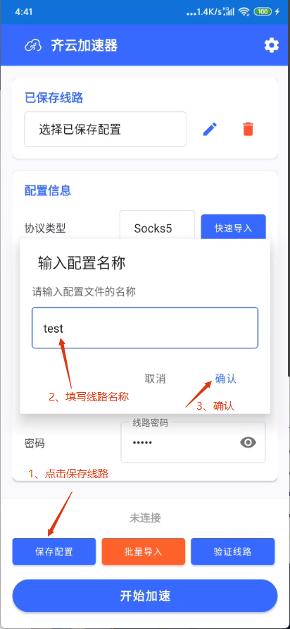 (6)保存成功后,点击开始加速按钮