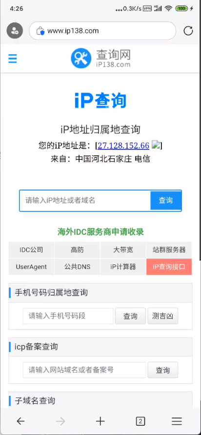 (8)最后访问:https://www.ip138.com ,即可查询IP是否修改成功